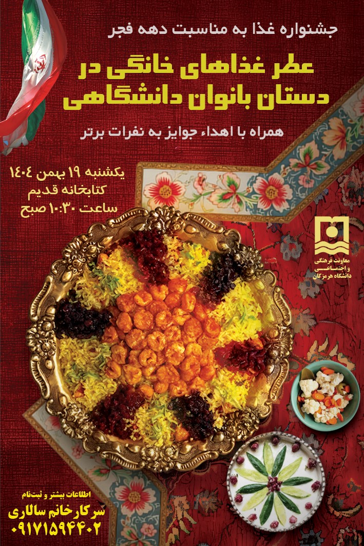 فراخوان برگزاری جشنواره «عطر غذاهای خانگی در دستان بانوان دانشگاهی» در دانشگاه هرمزگان