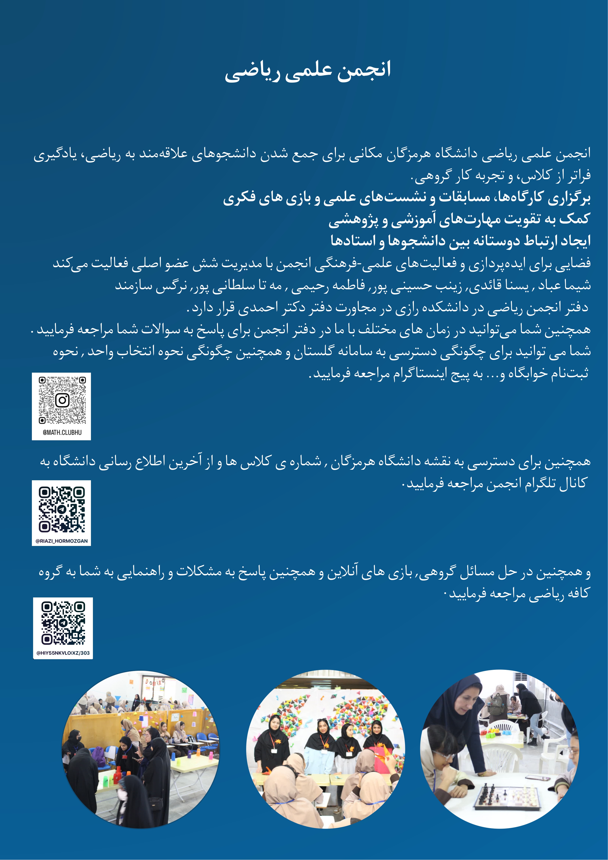 به همت انجمن علمی ریاضی دانشگاه هرمزگان اینفوگرافیک معرفی گروه ریاضی دانشکده علوم پایه دانشگاه هرمزگان صورت گرفت.