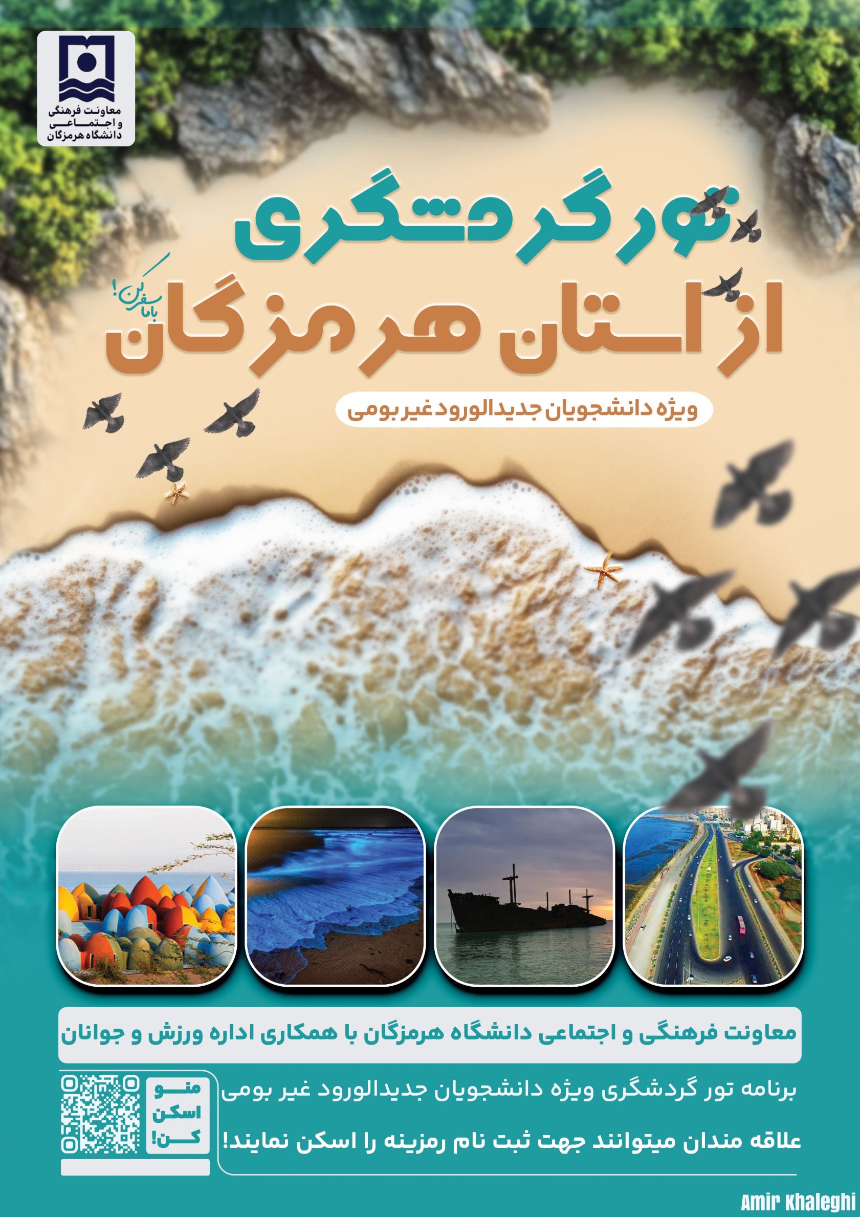معاونت فرهنگی و اجتماعی دانشگاه هرمزگان با همکاری اداره کل ورزش و جوانان، تور ویژه‌ای برای آشنایی دانشجویان غیربومی ورودی ۱۴۰۴ با جاذبه‌های طبیعی و فرهنگی هرمزگان برگزار می‌کند. دانشجویان می‌توانند برای شرکت در این رویداد محدود و جذاب از طریق لینک اعلام‌شده ثبت‌نام کنند.