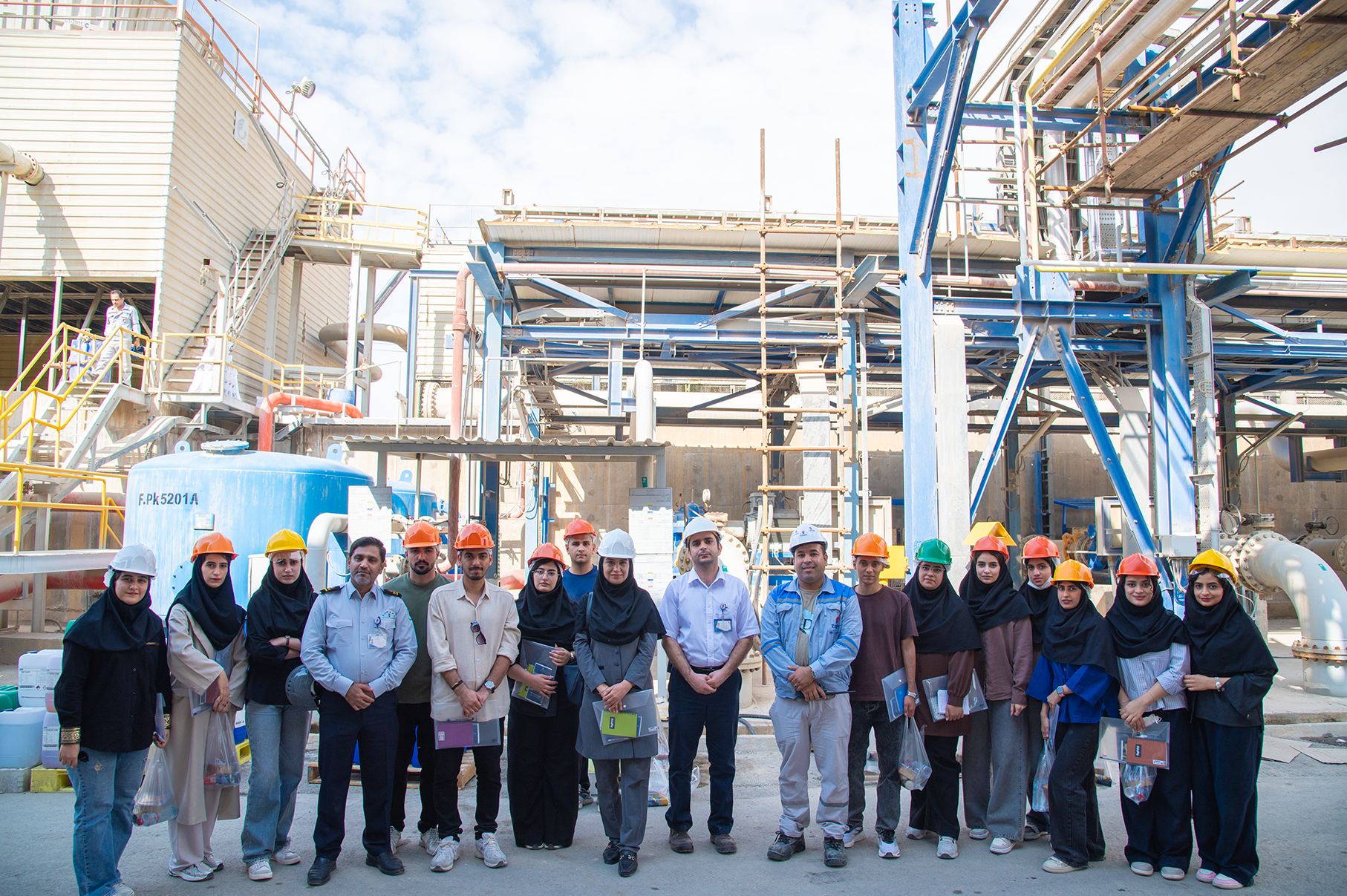در ادامه، دانشجویان در قالب گروه‌های مختلف وارد سایت عملیاتی شدند و از نزدیک با بخش‌های متنوع تولید، از جمله واحدهای فرآیندی، تجهیزات فعال، خطوط تولید محصولات پلیمری نظیر پلی‌استایرن کریستال و همچنین سازوکارهای ایمنی در مجاورت فلرها آشنا شدند. کارشناسان شرکت، توضیحات دقیق و مرحله‌به‌مرحله‌ای از روند تولید تا محصول نهایی ارائه کردند که با استقبال و رضایت دانشجویان همراه بود.