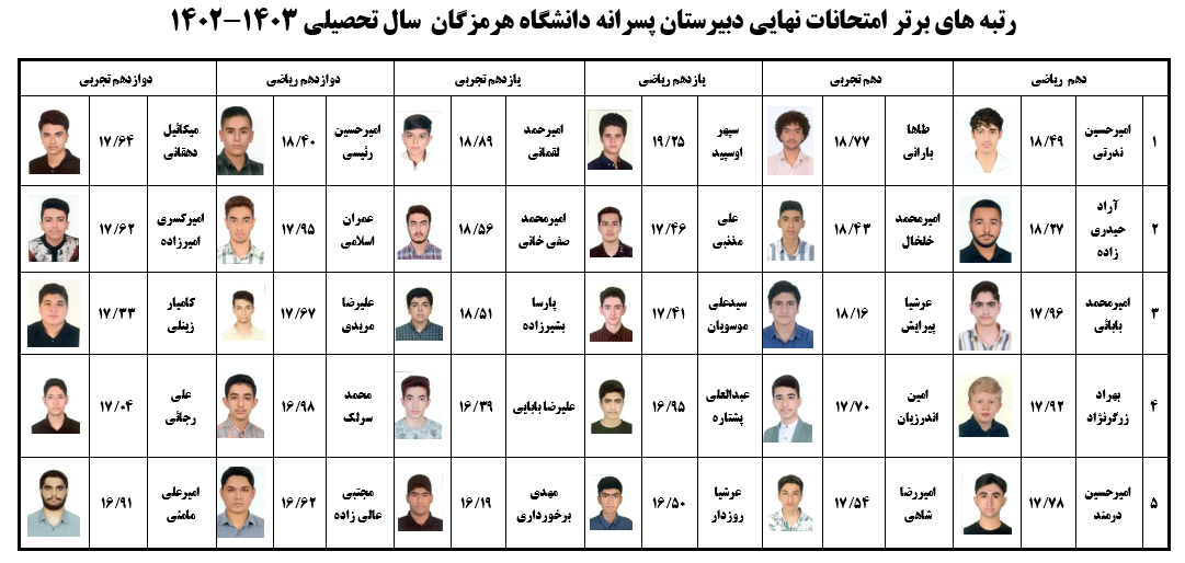 دانش آموزان برتر نوبت دوم سال تحصیلی 1403-1402